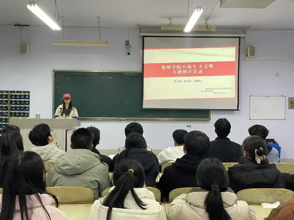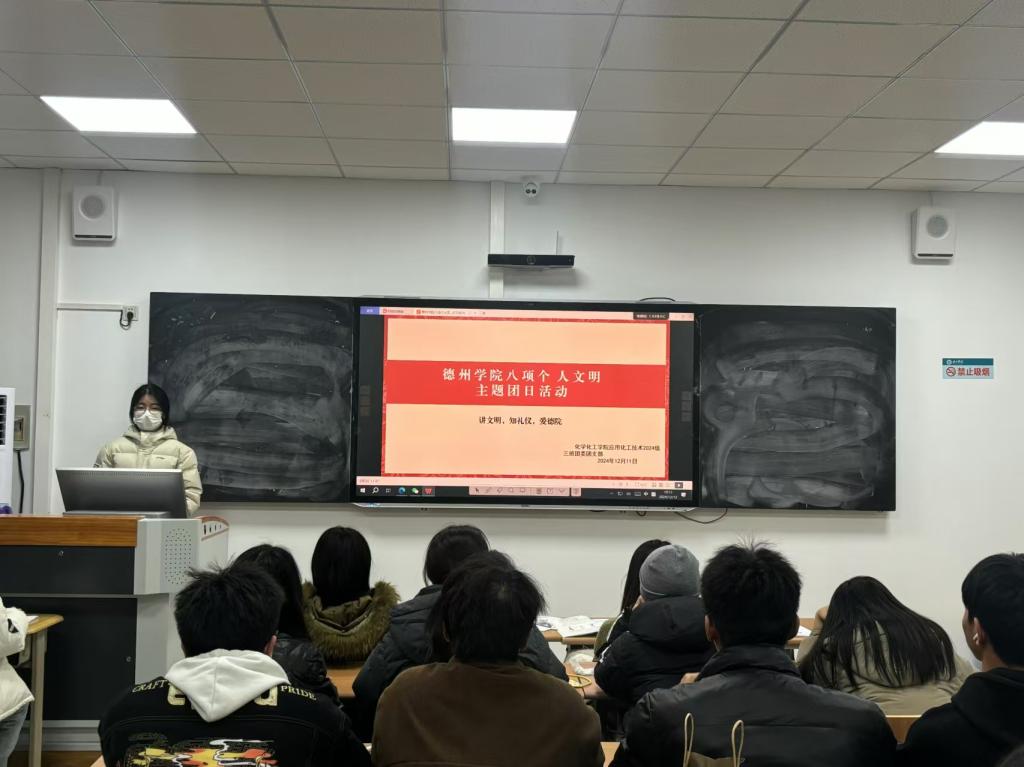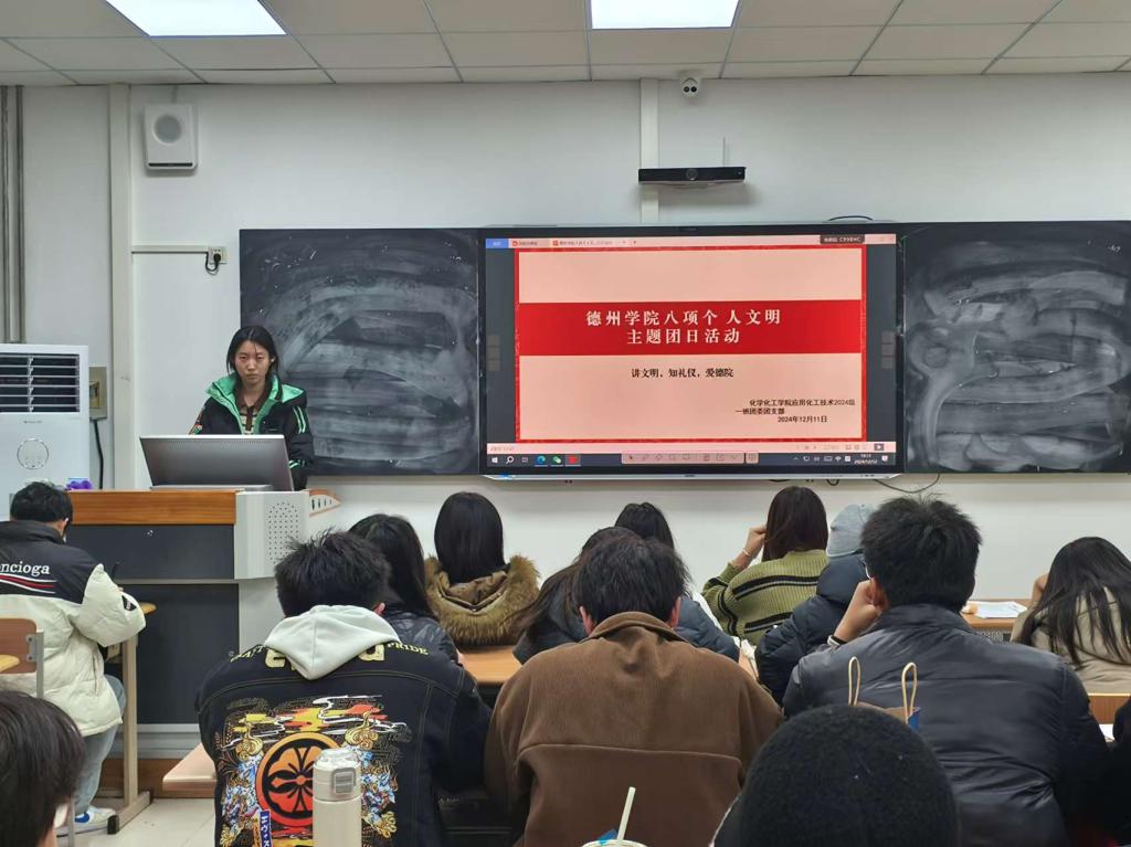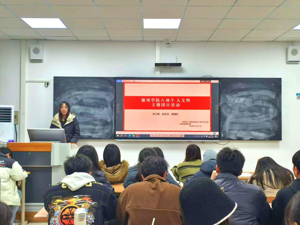 为贯彻落实党的二十届三中全会精神,加强betway西汉姆联官网大学生思政工作,强化文明养成与校风学风建设。12月10日,化学化工学院于求实楼开展“八项个人文明”主题团日活动。各班团支书主持,化学化工学院全体学生参加。