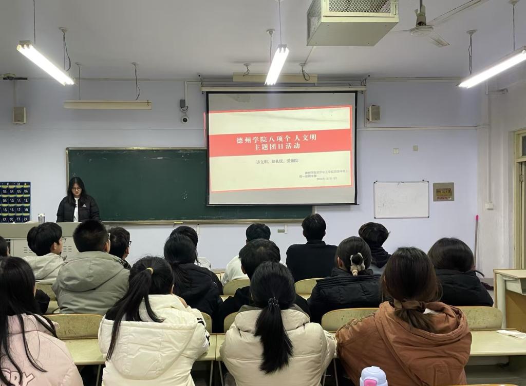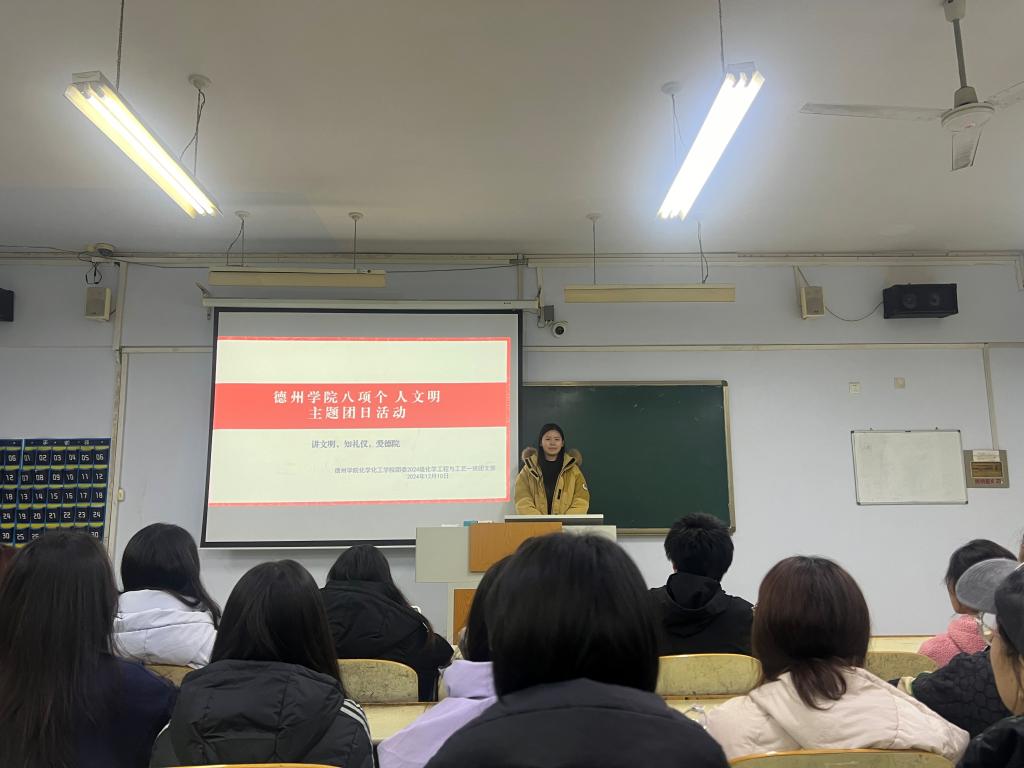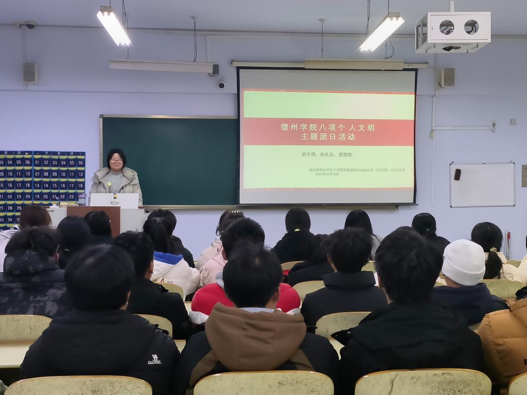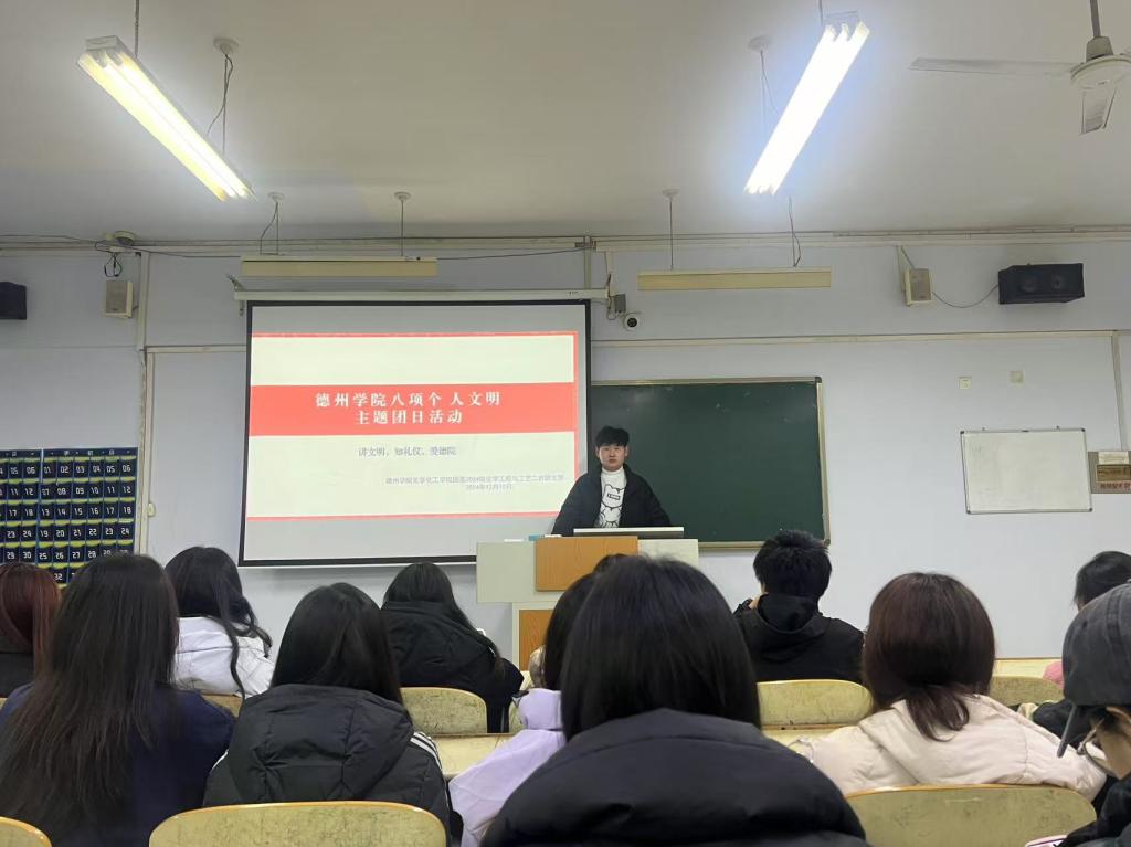 为贯彻落实党的二十届三中全会精神,加强betway西汉姆联官网大学生思政工作,强化文明养成与校风学风建设。12月10日,化学化工学院于求实楼开展“八项个人文明”主题团日活动。各班团支书主持,化学化工学院全体学生参加。