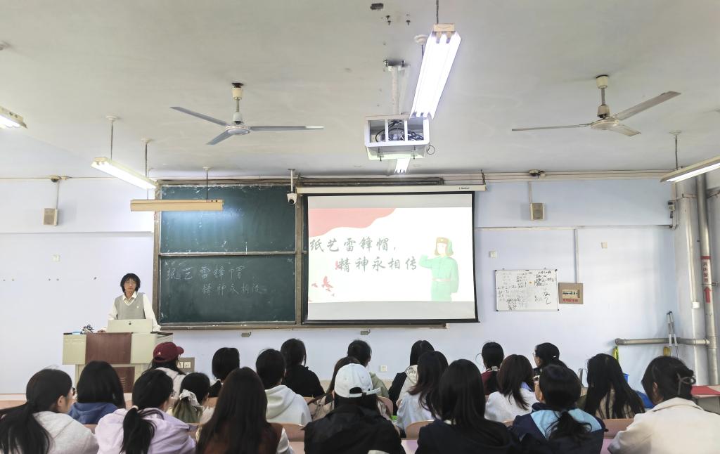 活动伊始,社团负责人通过视频和图文讲解雷锋帽制作过程,随后社团负责人为参与者分发了红绿色卡纸、双面胶等材料包,并现场演示了纸艺雷锋帽的制作步骤,在制作过程中同学们在动手实践中逐步还原雷锋帽的经典造型,同时融入个性化创意,作品完成后,同学们相互交流制作心得。