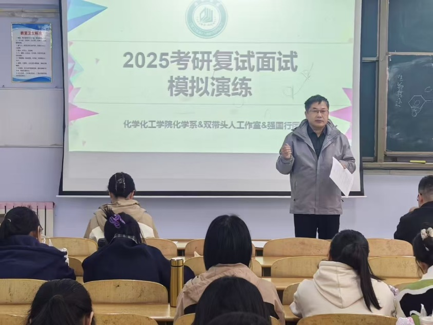 为助力考研学子深入了解研究生复试要求和流程,从容应对复试,提升专业表达与综合面试能力,3月20-25日,化学化工学院开展2025届考研复试模拟面试。学院分管负责人及多位经验丰富的教师担任评委进行指导。