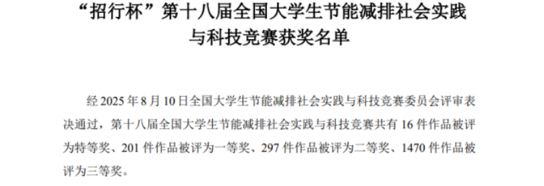 此次获奖是学生团队刻苦钻研的成果,体现了学院学子在节能减排领域的应用创新能力。学院始终秉持“以赛促学、以赛促创、以赛促研”的理念,将学科竞赛作为培养创新型人才的重要抓手。学院将继续秉持创新、绿色、发展的理念,营造浓厚的科技创新氛围,为我国生态文明建设和可持续发展培养更多的专业人才。