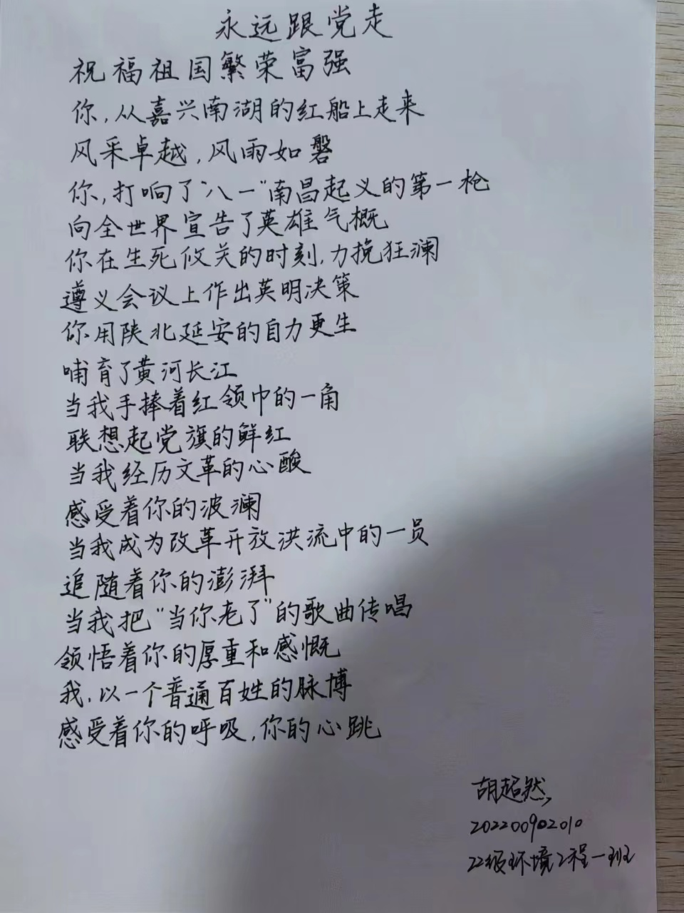 为深入开展学习贯彻习近平新时代中国特色社会主义思想主题教育,展示新时代青年奋发进取的精神风貌,以文化作品引导新时代青年努力实现个人理想与人生追求,5月初,化学化工学院举办“永远跟党走,礼赞新时代”文艺作品征集活动。学院部分学生积极参加。