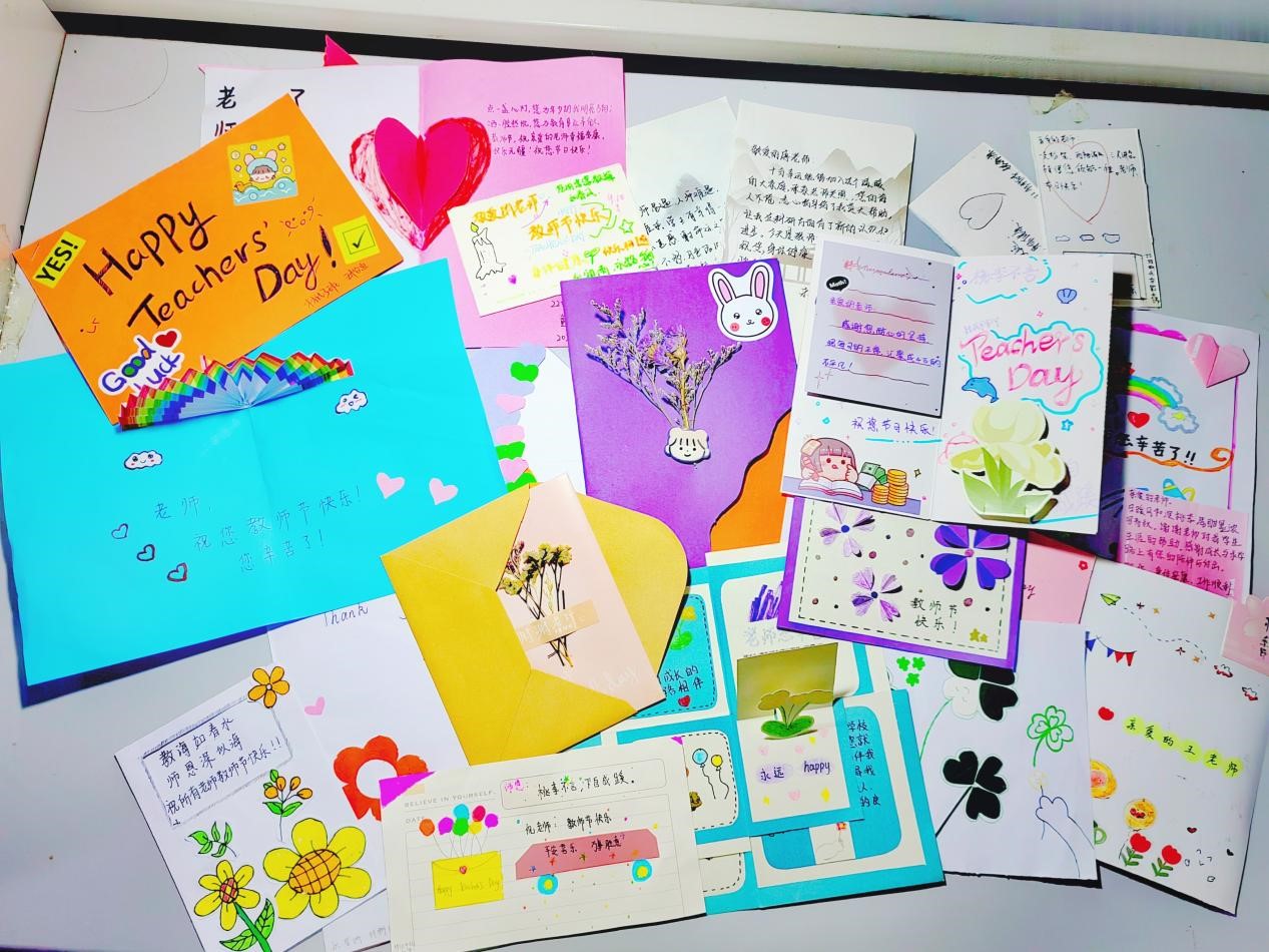活动前期,学生们充分发挥自己的想象力借助手中材料亲手制作教师节贺卡,并在贺卡上手写对教师的祝福和感恩之词,每一张贺卡都凝聚着学生深深的情谊和尊敬。制作完毕后,大家利用课余时间来到教室、实验室等场所,为老师们送上精致的贺卡。学院每位收到祝福的老师都深受感动,向同学们表达内心的谢意,并与同学们亲密交谈,展现出了浓浓的师生情。教师们表示,这样的举动激励着他们更加热爱工作,未来也将努力与学生建立亦师亦友的关系。