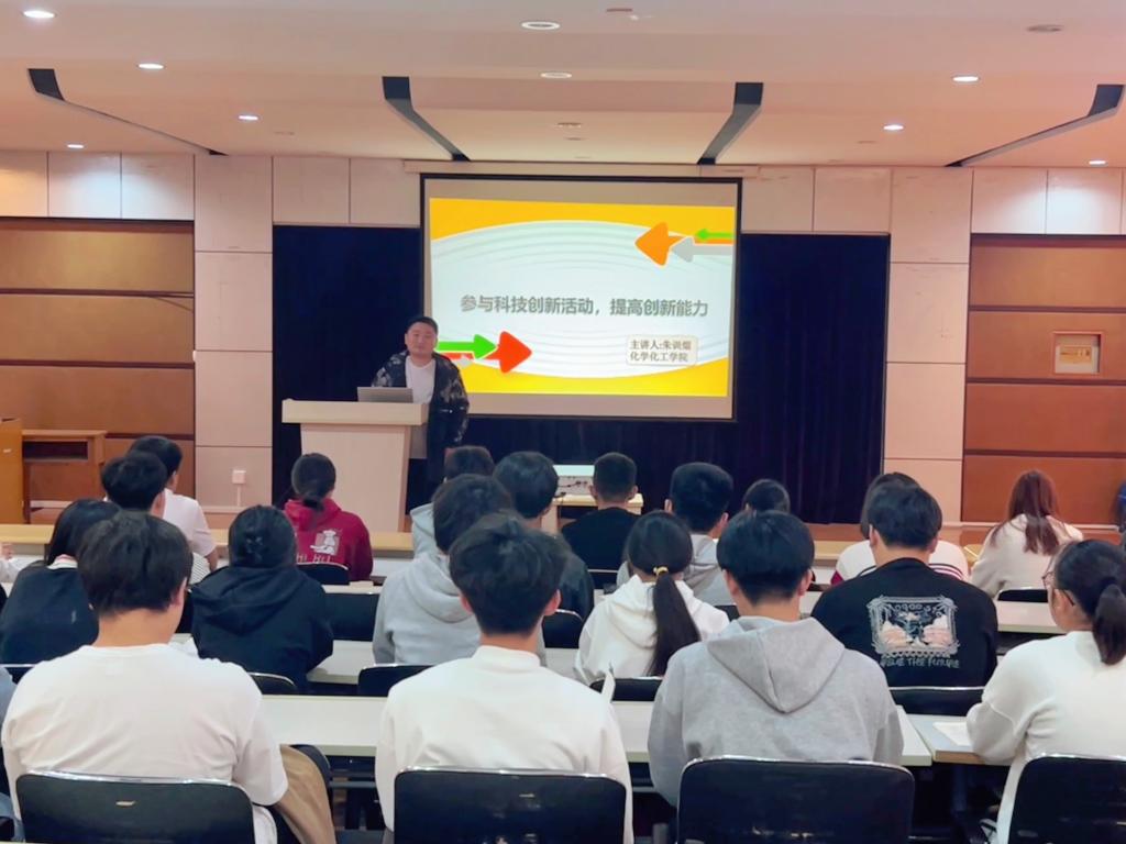 10月20日,化学化工学院于求实楼组织开展了“参与科技创新活动,提高创新能力”青马培训课程。课程由化学化工学院辅导员主持,培训班学员40人参加。