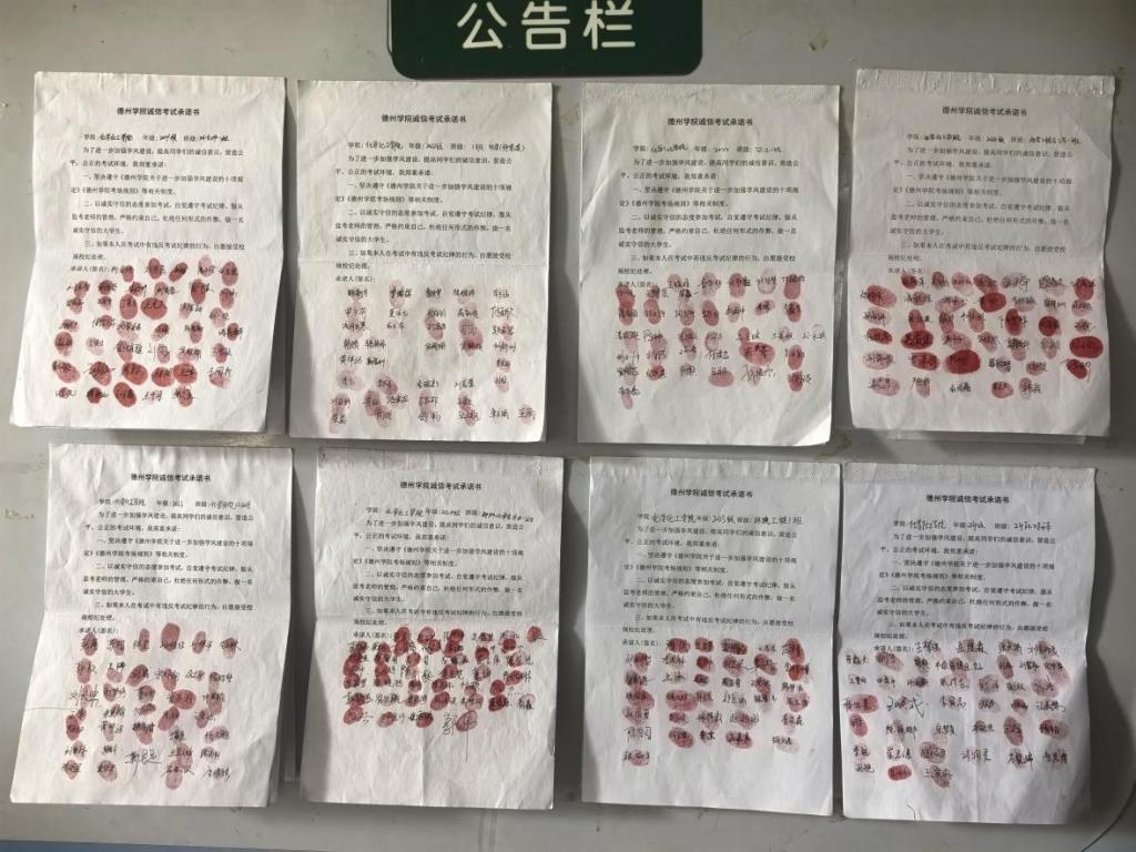 化学化工学院以组织签订《诚信考试承诺书》为载体,激发学生自主承诺守诺的积极性,牢固树立“不触红线、不越底线”的纪律观念;引导学生将诚信应考的要求内化于心、外化于行,形成“人人参与、共同监督”的契约氛围,以优良学风考风筑牢校园诚信根基。