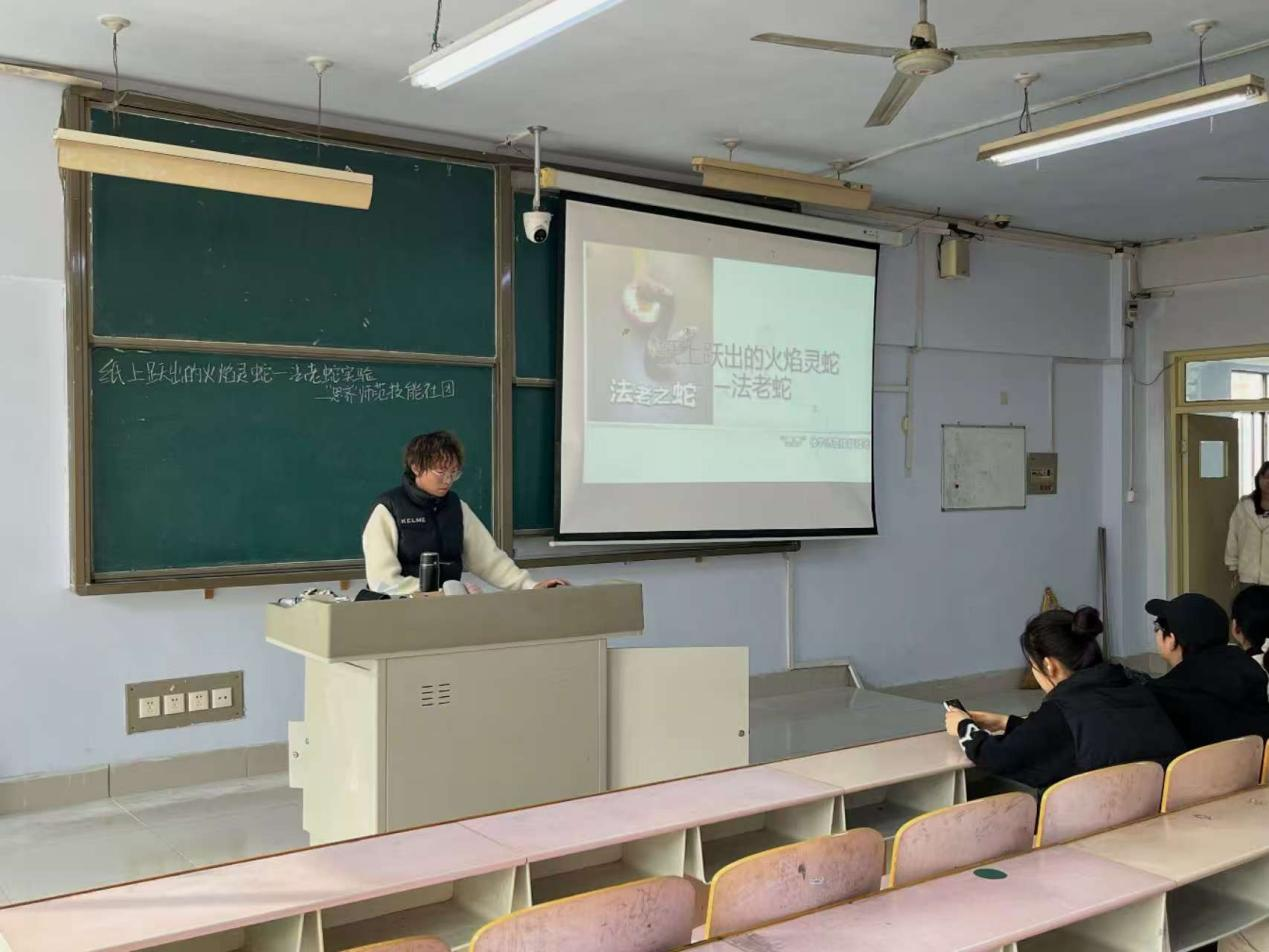 为了让同学们感受到化学学科的魅力,激发同学们学习化学的兴趣,化学化工学院“思齐”化学师范技能社团于11月2日在求实楼410教室举办了“纸上跃出的火焰灵蛇—法老蛇实验”活动。本次活动以实验的方式传播化学知识,展现化学魅力,增添校园文化生活的趣味性。