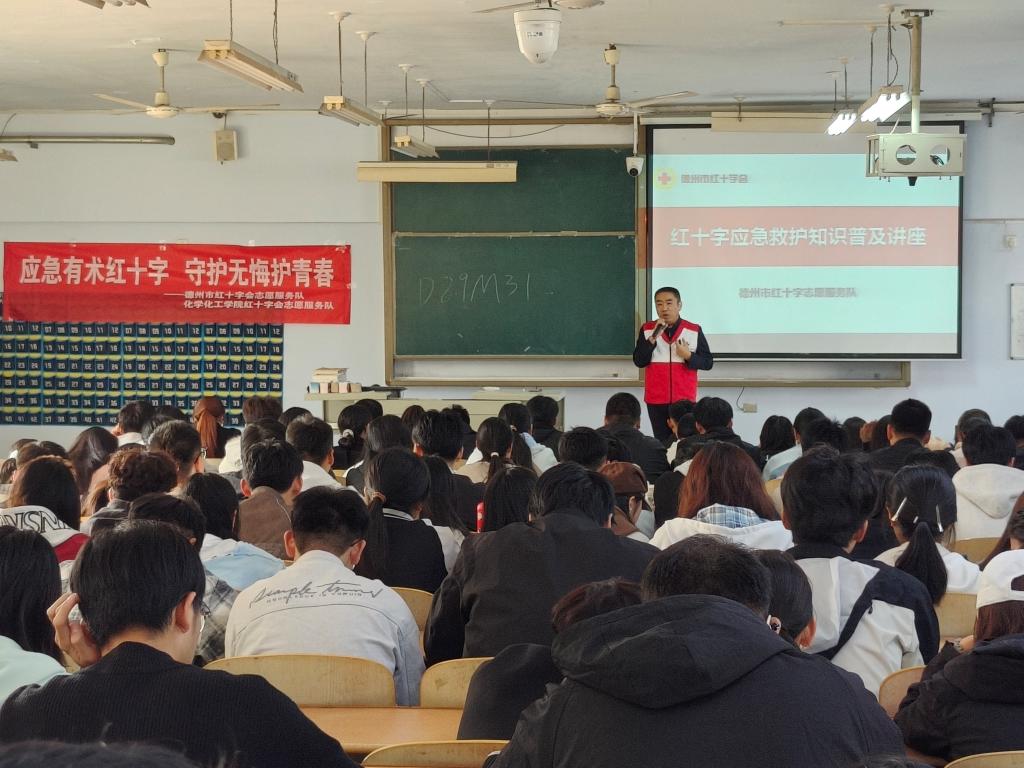 为强化学生社会责任感、筑牢校园安全防线,11月11日,化学化工学院联合德州市红十字会,在求实楼413教室成功举办“应急有术红十字,守护无悔护青春”应急救援培训活动。