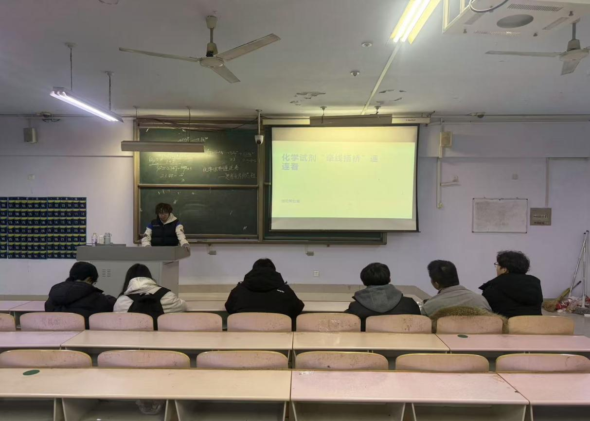 帮助学生熟练掌握常见化学试剂核心知识,强化实验安全意识,提升团队协作能力,化学化学化工学院“思齐”化学师范技能社团于12月28日在求实楼411教室举办“化学试剂‘牵线搭桥’连连看”活动,“思齐”化学师范技能社团全体成员参加活动。