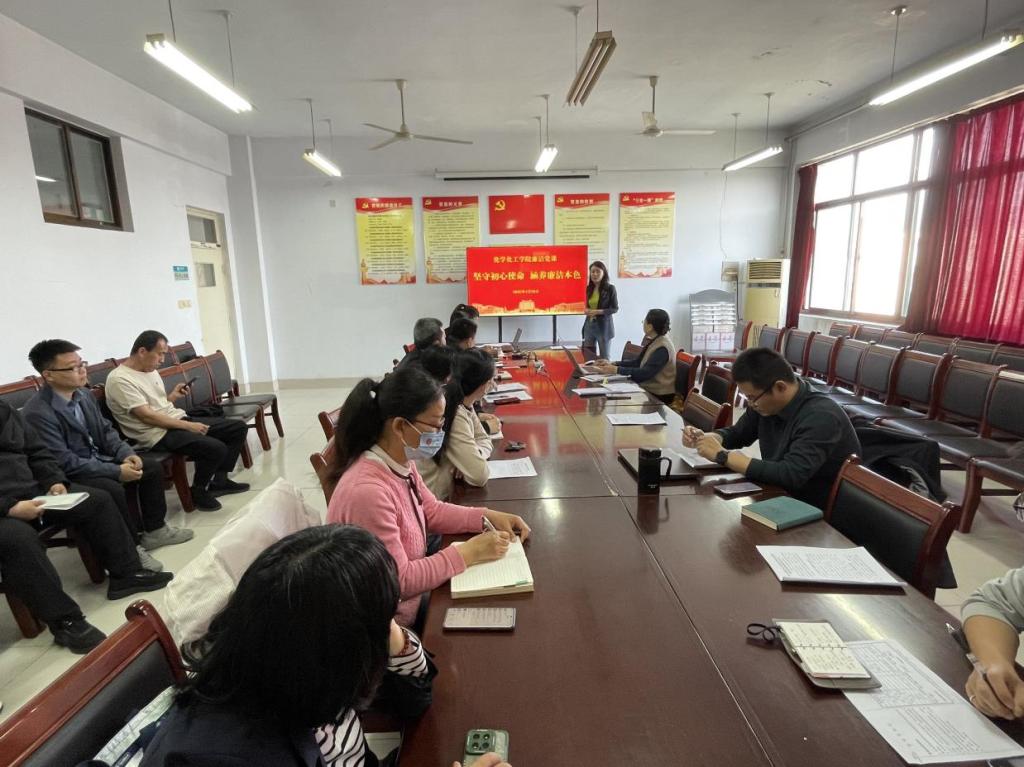 为加强党员教师廉洁意识,推动学院党风廉政建设。4月29日,化学化工学院于求实楼504开展“坚守初心使命 涵养廉洁本色”廉洁党课学习教育活动。本次廉洁党课由学院党委书记主讲,部分教师党员参加。