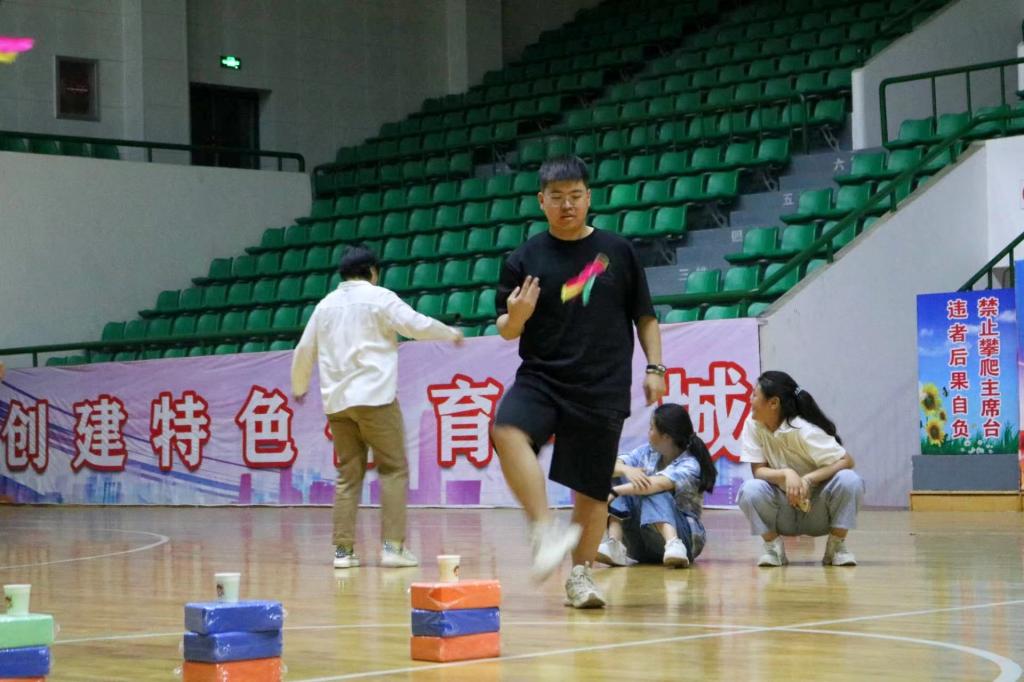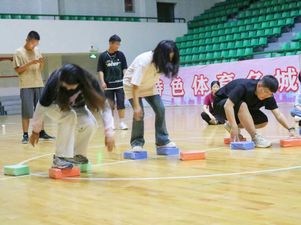 趣味运动共设乒乓球接力赛、指压板跳绳、摸石过河、气球运杯、踢毽子、趣味保龄球六个项目,裁判宣读项目规则后,大家摩拳擦掌、跃跃欲试,比赛现场气氛热烈,运动员们并肩作战,共同克服困难,完成各项挑战。围观居民也热情高涨,纷纷为运动员们加油打气,掌声与欢呼声此起彼伏。参加活动项目既是智慧和体力的角逐,更是团结与协作的比拼,且不乏趣味性与互动性,使青年大学生和社区居民乐在其中。