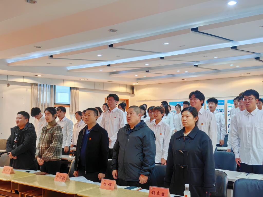 开班仪式在嘹亮的团歌中拉开帷幕。学院团委书记传达了《德州学院 2024-2025学年“青年马克思主义者”培训班课程安排》,对此次培训班的课程内容作了详细说明。党委副书记为参训学员代表授旗,参训学员代表作表态发言,表达了认真参加培训,争取优异成绩的决心。
