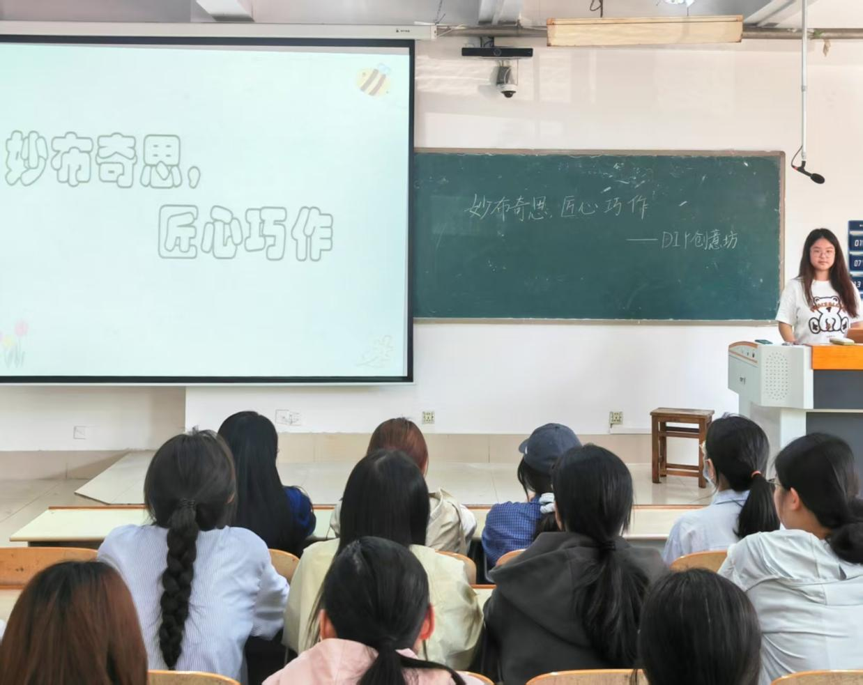 为弘扬环保理念,激发青年学子的创新思维与动手能力,2025年4月29日,化学化工学院DIY创意坊于求真楼105教室开展“妙布奇思,匠心巧作”不织布手工艺品创作活动,社团部分成员参加。