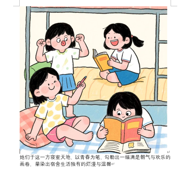 本次比赛以“温暖”为主题,旨在激励同学们通过镜头和画笔捕捉宿舍生活中温馨和谐的瞬间。参赛作品题材广泛,有的捕捉了室友挑灯夜读时的专注表情;有的记录了深夜中大家围坐桌边,分享美食、畅谈梦想的欢乐时光;还有的展现了生病时室友的细心照料和相互陪伴的感人时刻。每一件作品都生动地展示了宿舍成员间的深厚情感,传递出满满的温暖与爱。