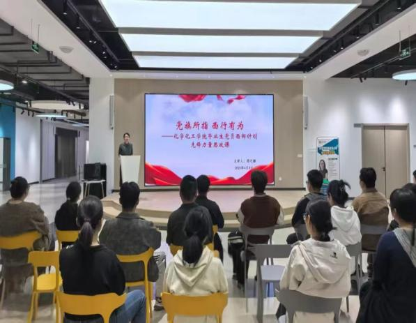依托“最后一次主题班会”“毕业生座谈交流会”等载体,开展爱国主义、理想信念与社会主义核心价值观教育。深入贯彻中央八项规定精神学习教育,进一步强化毕业生党员的党性修养和作风建设,筑牢廉洁自律意识。4月8日,举办“党旗所指 西行有为”西部计划专题思政课,学院党委书记以“青春绽放在祖国西部”为主题,结合化学学科特色剖析西部开发机遇,解读学校政策,激发毕业生“到基层去”的使命担当。