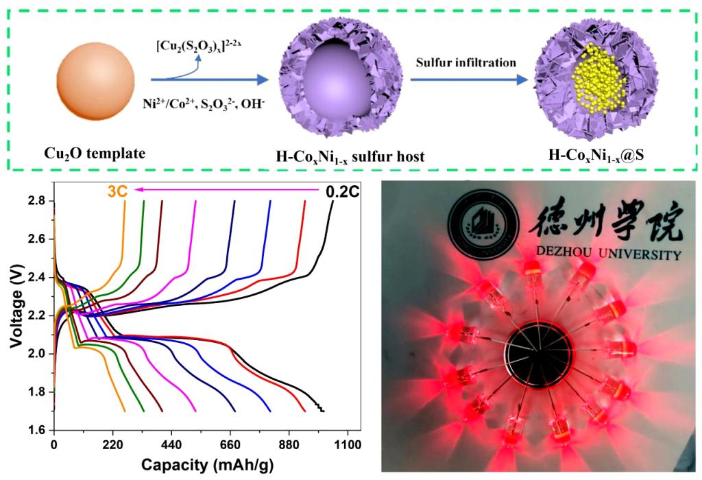 近日,化学化工学院耿龙龙副教授、李振博士和李清博士等合作,发挥山东省青创团队学科交叉优势,在高性能多硫化锂电催化剂设计与构筑面取得重要进展,相关研究成果以“One-step synthesis of hollow spherical Co/Ni hydroxides as multifunctional polysulfide mediators to steer sulfur redox kinetics for high performance lithium-sulfur batteries”为题发表在国际知名期刊《Journal of Materials Chemistry A》(IF:10.7,TOP期刊)。